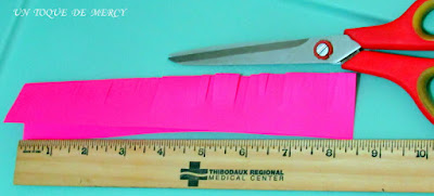 DOBLAR EL PAPEL DE 8 PULGADAS DE LARGO POR 4 PULGADAS DE ANCHO..//Y HACER CORTES CON LA TIJERA EN EL BORDE DOBLADO... // COMO MUESTRO..